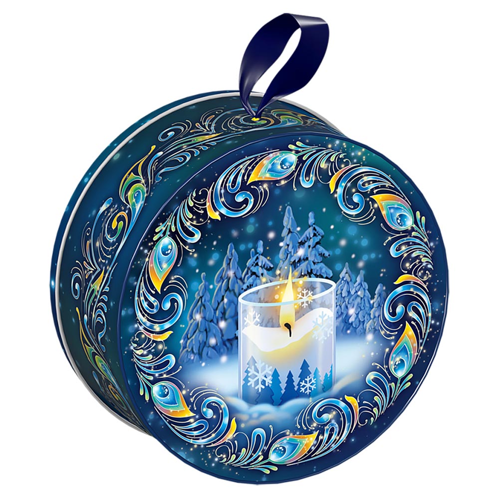 Подарок со сладостями на Новый год в жестяной упаковке Жемчужина 800г Премиум.